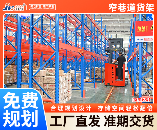 窄巷道貨架凈高要求在9m以上,窄巷道貨架可以更多的利用到倉(cāng)庫(kù)上方的空間,流通速度快,大大提高了工作效率。