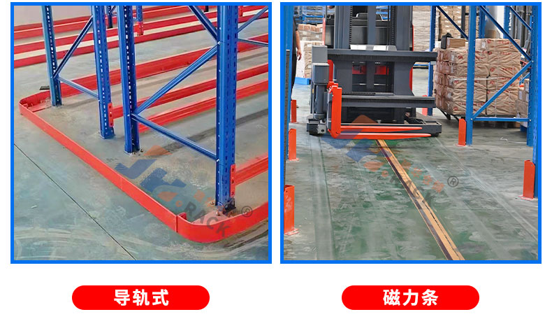 窄巷道貨架系統(tǒng)主體為橫梁式貨架系統(tǒng),區(qū)別在于貨架底部地面上加裝“三向堆垛叉車(chē)”的行動(dòng)導(dǎo)軌。物料搬運(yùn)叉車(chē)限為專(zhuān)用的“三向堆垛叉車(chē)”。三向堆垛叉車(chē)沿既定導(dǎo)軌滑行。貨架系統(tǒng)的堆垛通道寬度稍大于托盤(pán)貨物的寬度,高密度的存儲(chǔ)需求得以實(shí)現(xiàn)。同時(shí)繼承了橫梁式貨架系統(tǒng)的所有優(yōu)點(diǎn),貨架系統(tǒng)所收納的所有物料均具備100%的可選性,叉車(chē)可隨時(shí)存儲(chǔ)任一托盤(pán)貨物??焖俚拇鎯?chǔ)效率,非常高的存儲(chǔ)密度,對(duì)于適合采用窄巷道貨架系統(tǒng)的存儲(chǔ)與物流中心來(lái)說(shuō),帶來(lái)的是顯著的生產(chǎn)效率與成本效益。